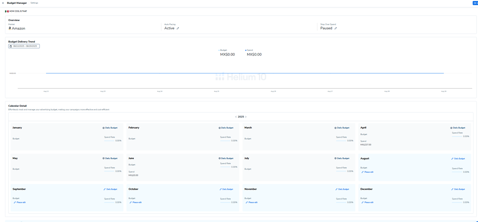 首页 帮助中心 营销工具Helium10 Ads 预算管理器:更智能的广告预算规划与管理