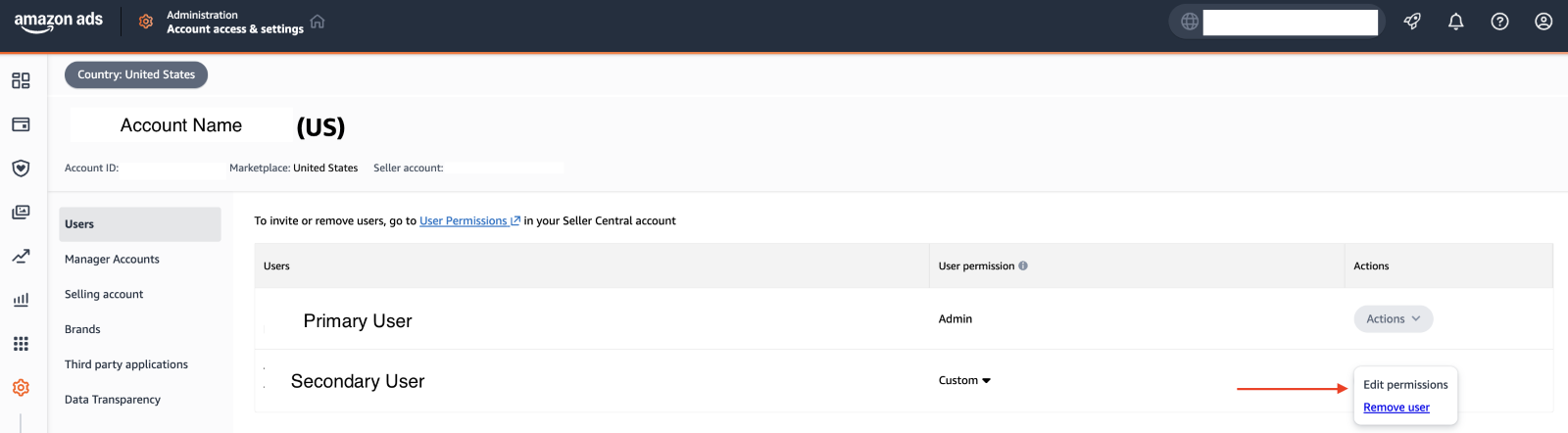 如果使用次要用户的电子邮件地址,则必须由卖家中心账户的主要用户来设置权限。请注意,建议在使用次要用户的电子邮件地址在Helium 10的连接页面上连接PPC令牌之前配置好这些权限。此外,您必须在所有希望为该次要用户授予广告权限的广告账户上完成此过程,因为这些将是导入Helium 10广告平台的所有账户。