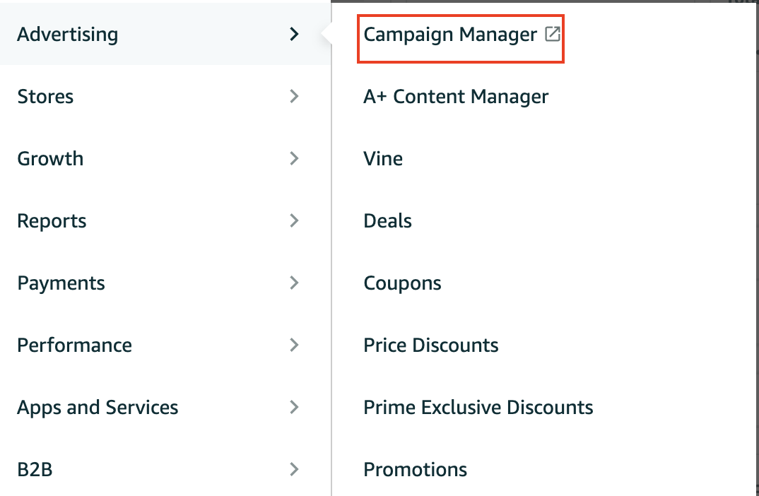 4. 在“广告”菜单中点击“Campaign Manager”。