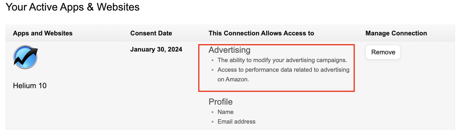现在权限已ssions have been configured properly, let’s verify that you have access to ALL of the advertising accounts that you wish to pull into Helium 10 Ads.