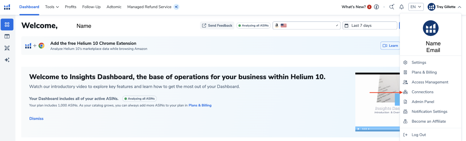 既然您已验证了对希望拉入Helium 10 Ads的所有广告账户的访问权限,现在需要将您的PPC令牌连接到Helium 10。