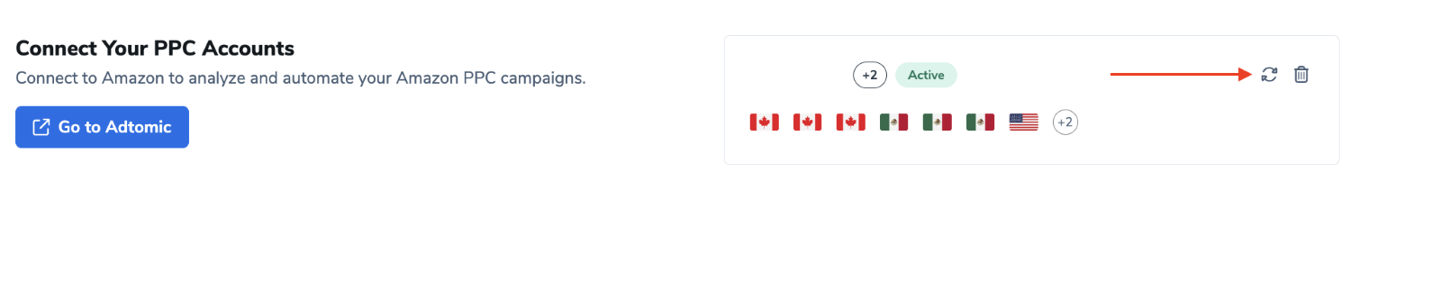 既然您已验证您可以访问需要导入Helium 10 Ads 的所有广告账户,并且PPC令牌已连接并处于活动状态,请在Helium 10上刷新您当前的PPC令牌以导入所有可访问的账户。
