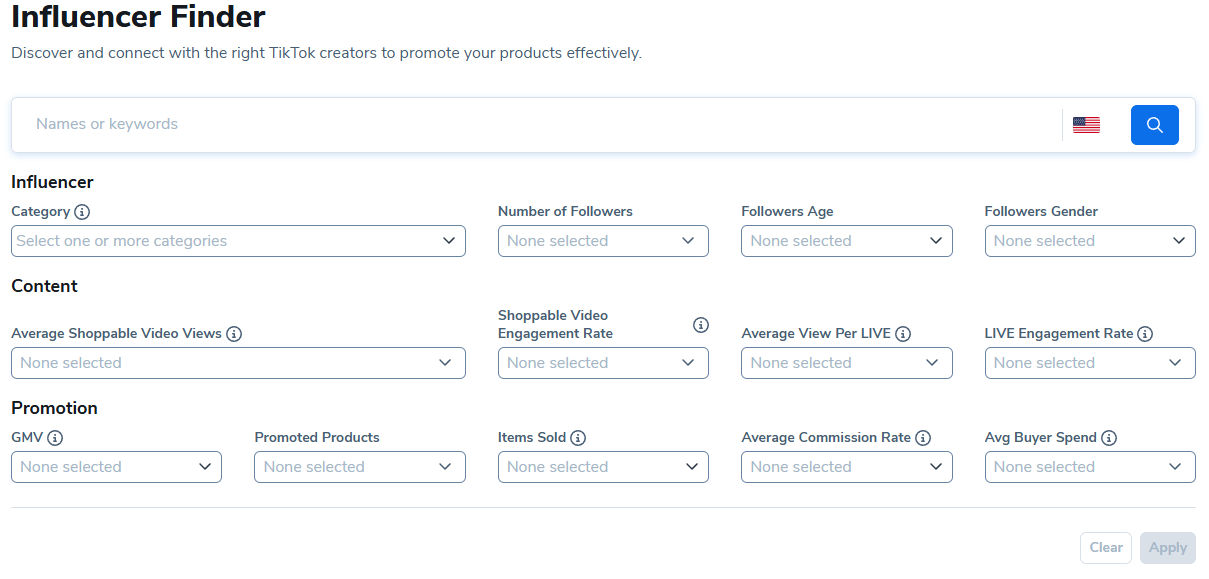 注意:影响者查找器目前仅限于亚马逊和TikTok美国。