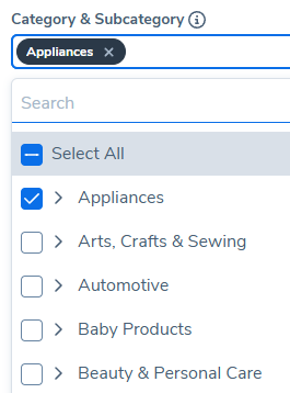 - 从下拉菜单中选择您感兴趣的亚马逊类目。