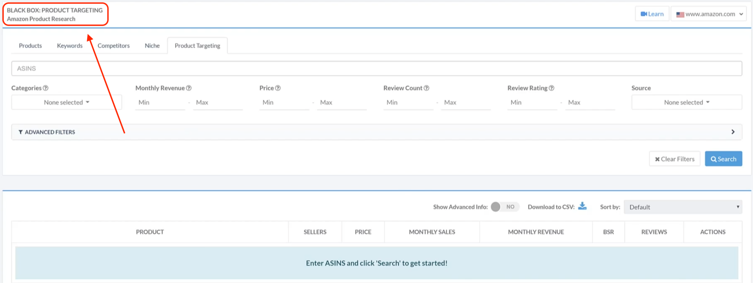 您还可以利用在黑盒中与关键词或产品研究标签使用的所有相同过滤器。确保展开高级过滤器框,以便深入您感兴趣的利基市场。