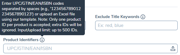 如果您已有产品列表,可以通过在提供的字段中输入标识符(用空格分隔)或上传Excel文件来快速查找。此方法允许您一次研究多达500个产品ID。