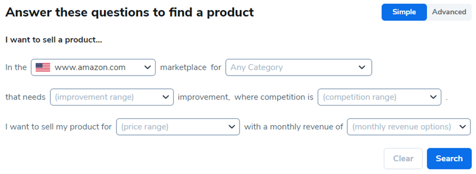 如果您想微调产品研究,请将筛选选项切换到高级。您将看到按产品、竞争对手和销售分类的多个选项。每个字段都有一个工具提示,当您悬停时会解释该字段。